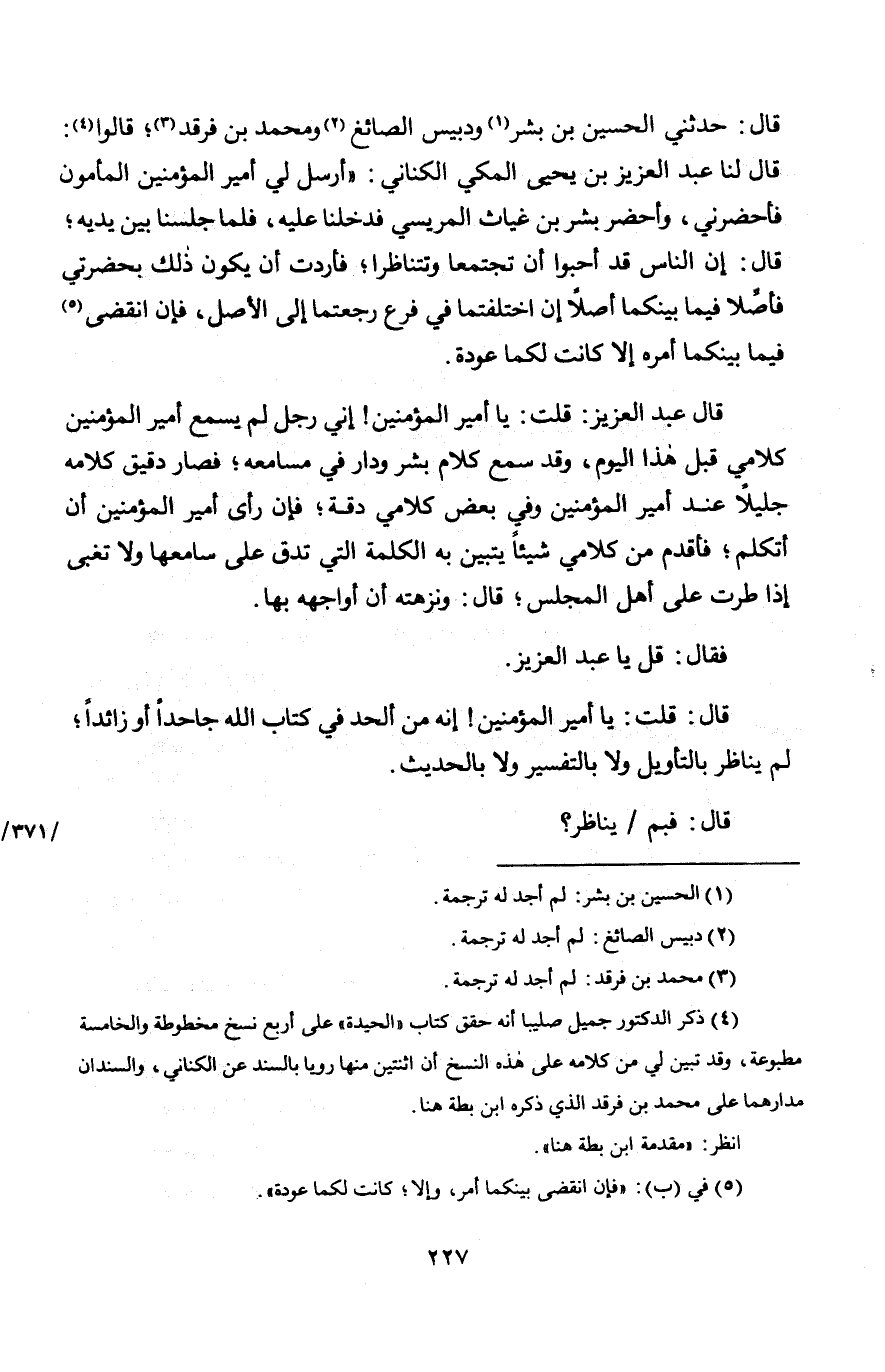 §مُنَاظَرَةُ عَبْدِ الْعَزِيزِ بْنِ يَحْيَى الْمَكِّيِّ لِبِشْرِ بْنِ غِيَاثٍ الْمِرِّيسِيِّ بِحَضْرَةِ الْمَأْمُونِ