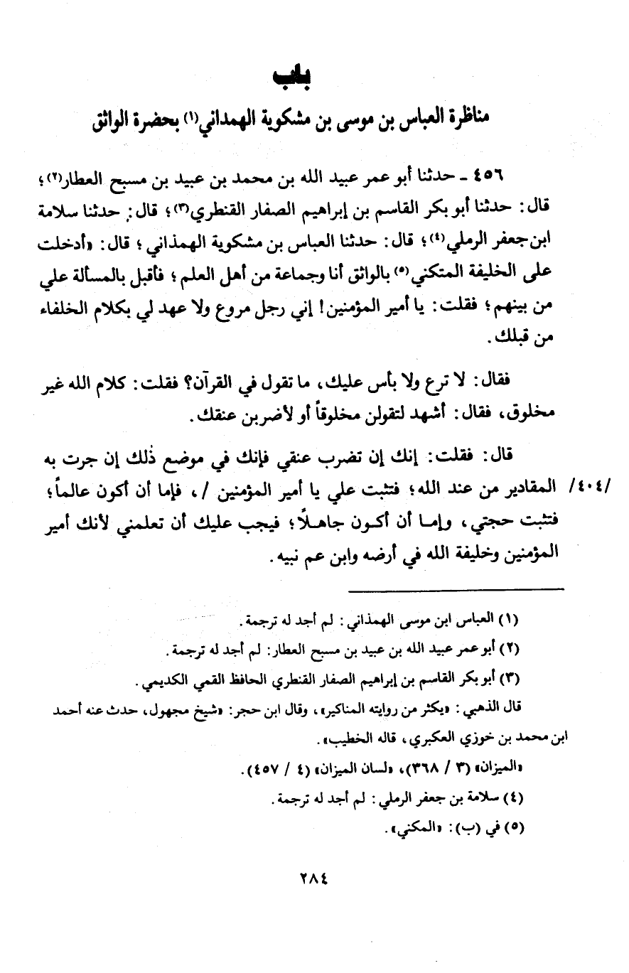 §بَابُ مُنَاظَرَةِ الْعَبَّاسِ بْنِ مُوسَى بْنِ مَشْكَوَيْهِ الْهَمْدَانِيِّ بِحَضْرَةِ الْوَاثِقِ