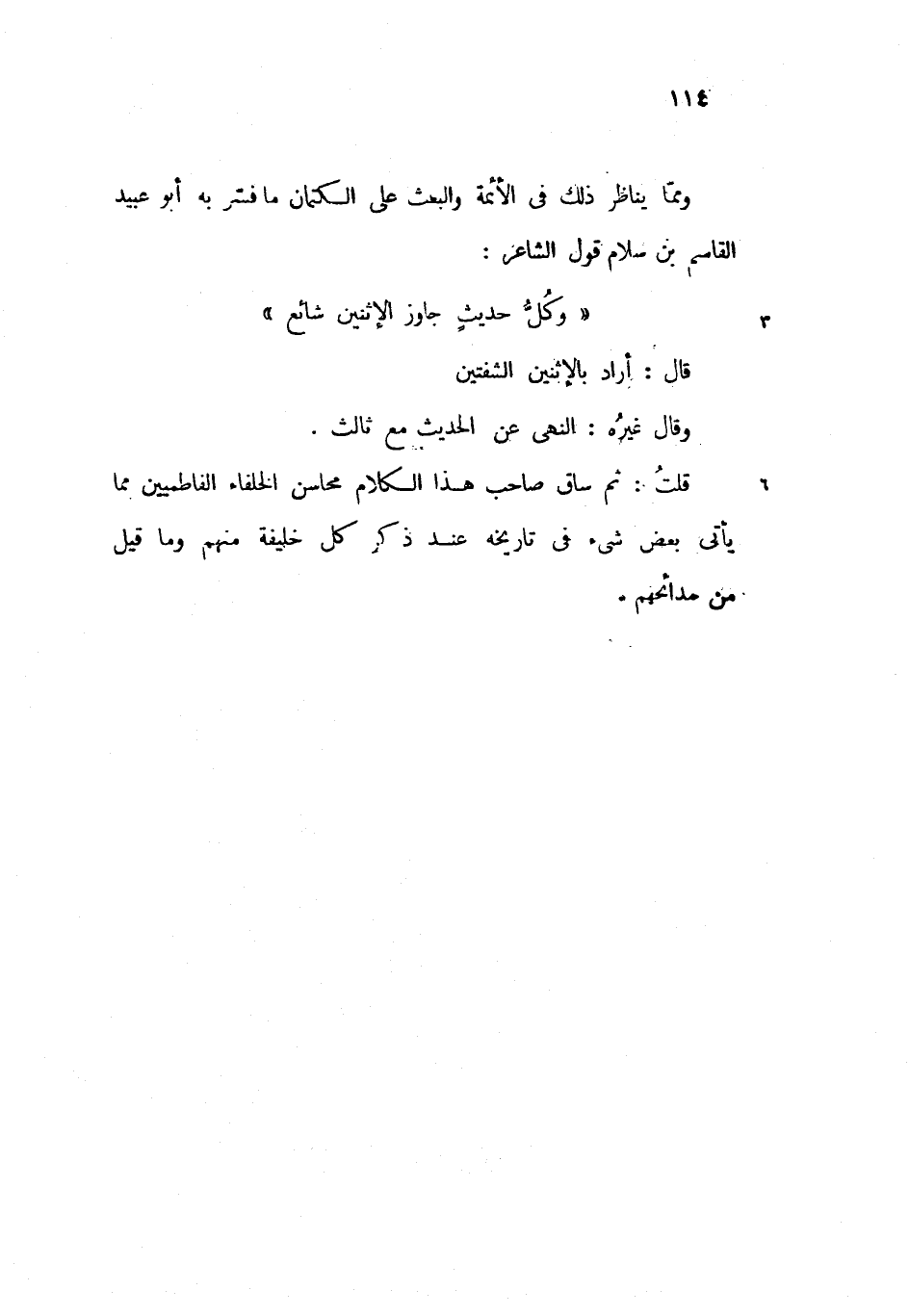 وممّا يناظر ذلك فى الأئمة والبعث على الكتمان ما فسّر به أبو عبيد القاسم بن سلام قول الشاعر: