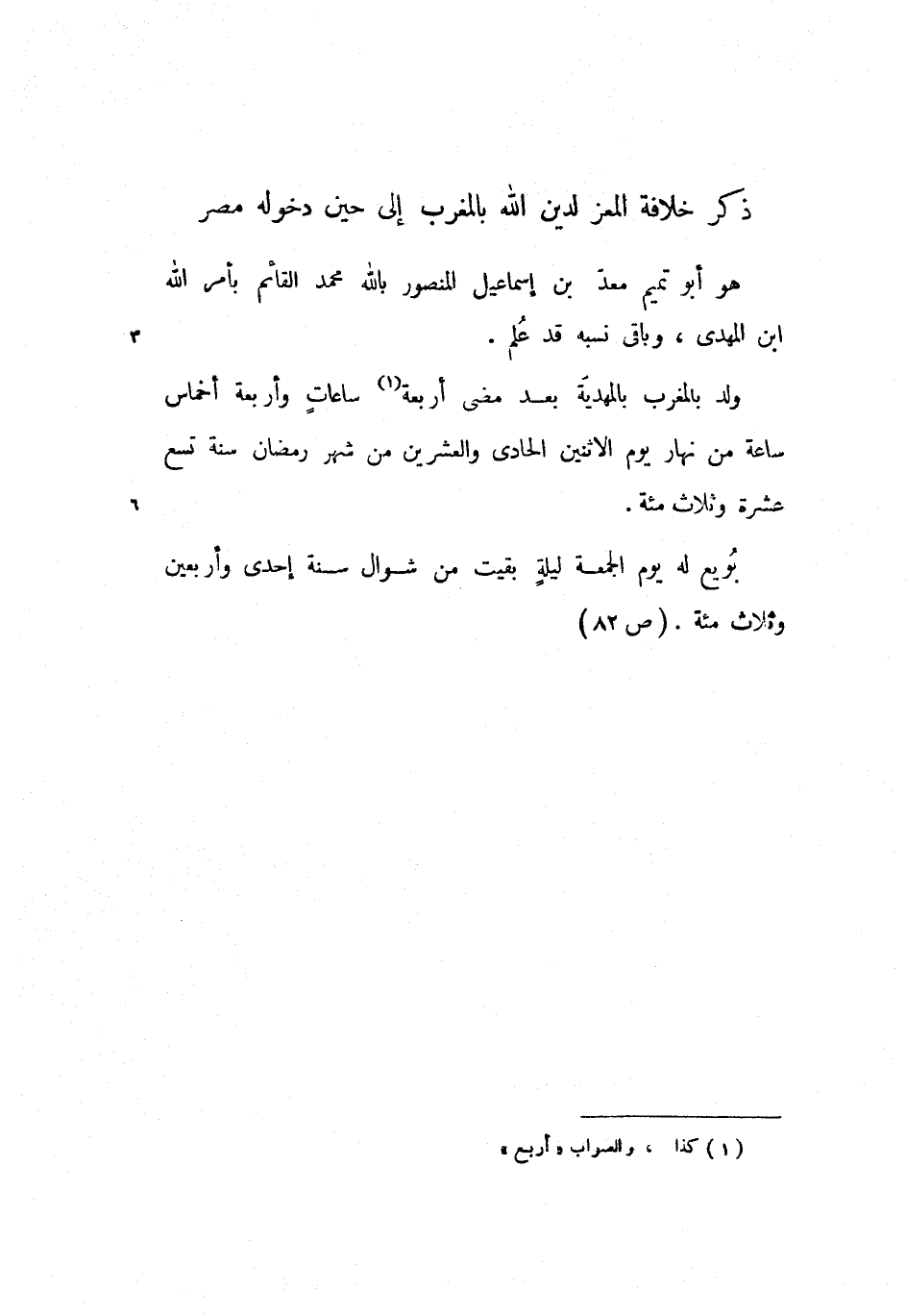 بويع له يوم الجمعة ليلة بقيت من شوال سنة إحدى وأربعين وثلاث مئة. (ص 82)