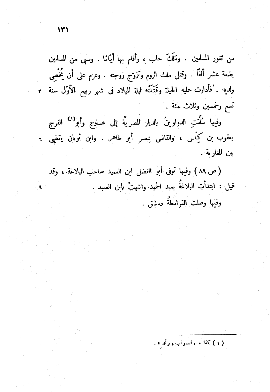 (ص 89) وفيها توفى أبو الفضل ابن العميد صاحب البلاغة، وقد قيل: ابتدأت البلاغة بعبد الحميد وانتهت بابن العميد.