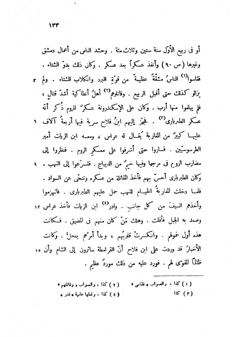 أو فى ربيع الأوّل سنة ستين وثلاث مئة. وحشد الناس من أعمال دمشق وغيرها (ص 90) وأنفذ عسكرا بعد عسكر. وكان ذلك بدوّ الشتاء.