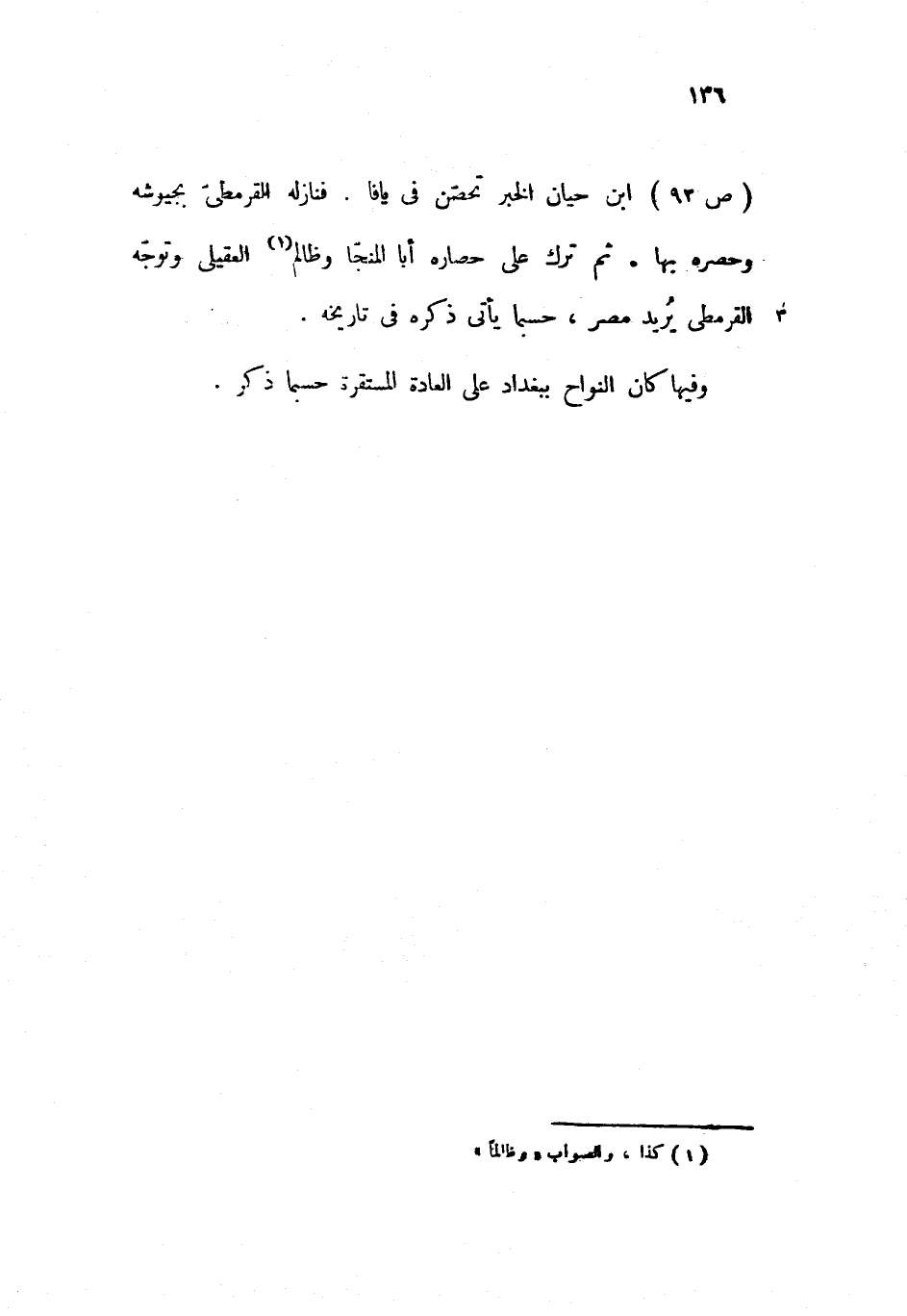 (ص 92) ابن حيان الخبر تحصّن فى يافا. فنازله القرمطىّ بجيوشه وحصره بها. ثم ترك على حصاره أبا المنجّا وظالم العقيلى وتوجّه القرمطى يريد مصر، حسبما يأتى ذكره فى تاريخه.