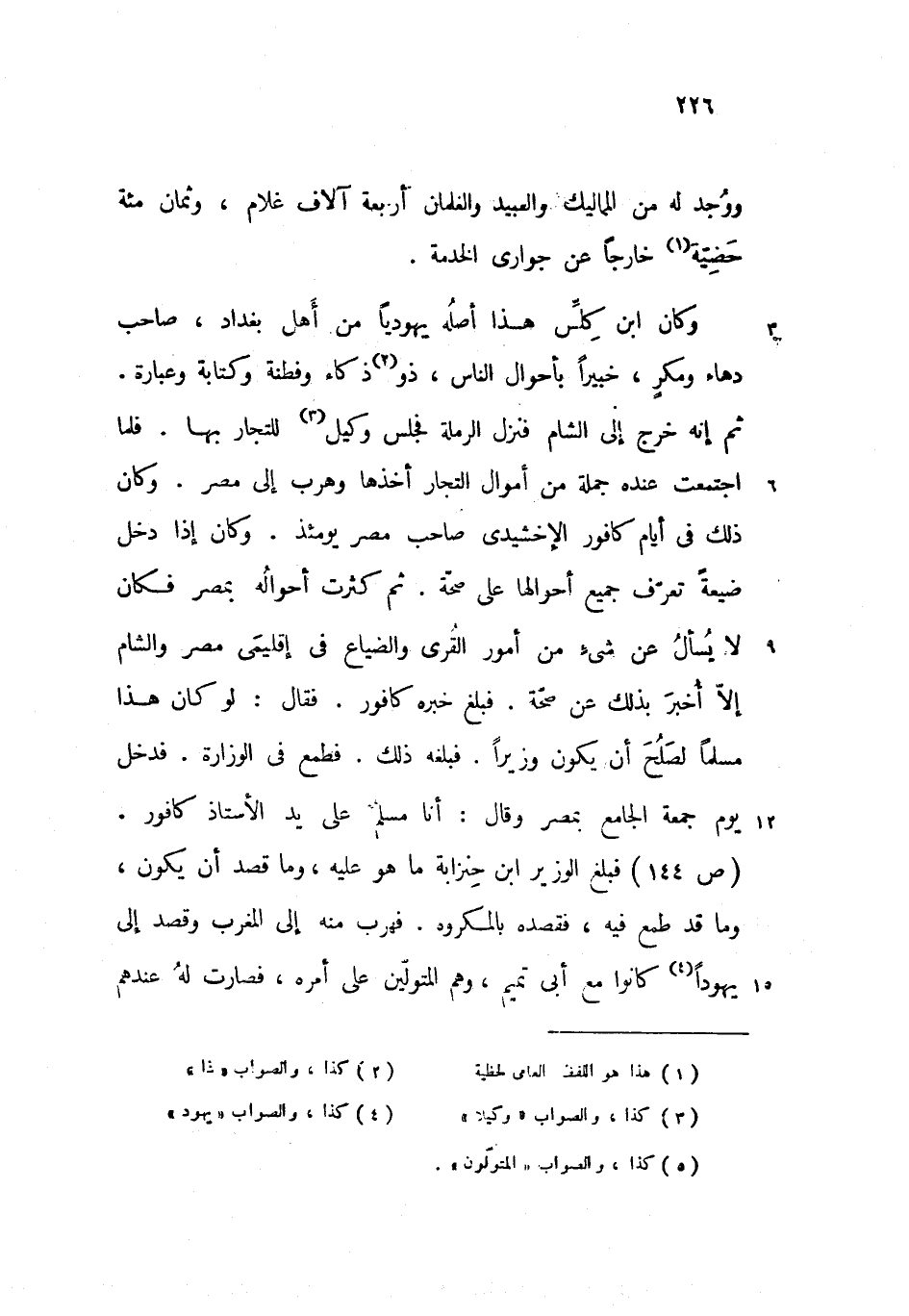 (ص 144) فبلغ الوزير ابن حنزابة ما هو عليه، وما قصد أن يكون، وما قد طمع فيه، فقصده بالمكروه. فهرب منه إلى المغرب وقصد إلى يهودا كانوا مع أبى تميم، وهم المتولّين على أمره، فصارت له عندهم
