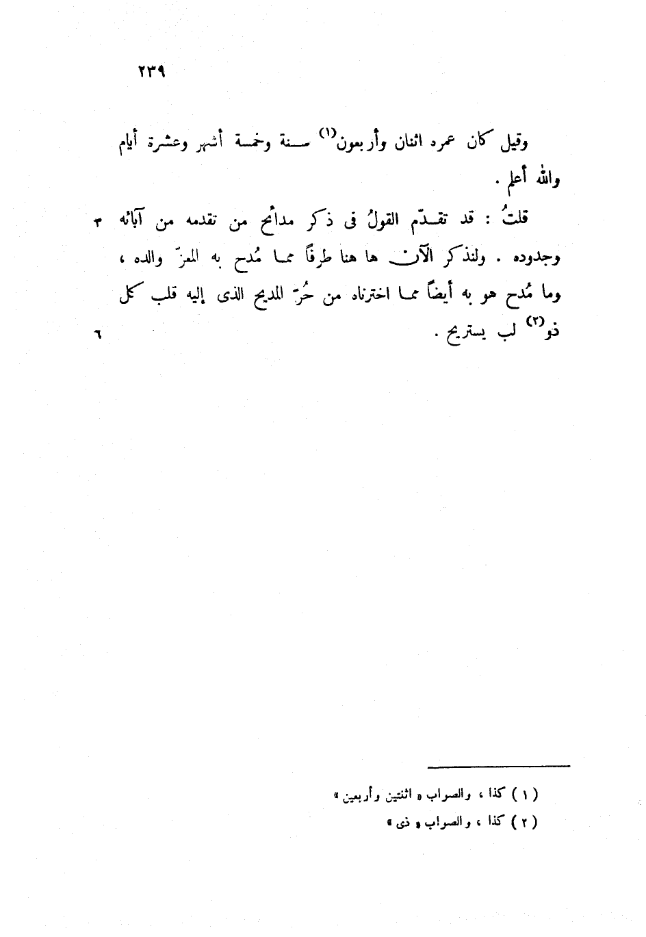 وقيل كان عمره اثنان وأربعون سنة وخمسة أشهر وعشرة أيام والله أعلم.