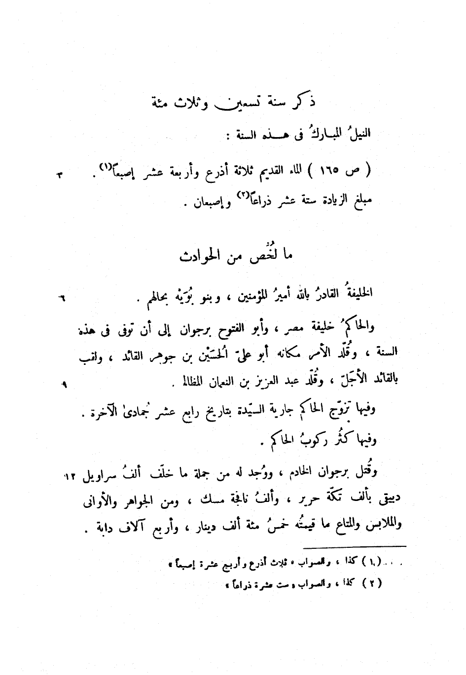 (ص 165) الماء القديم ثلاثة أذرع وأربعة عشر إصبعا.