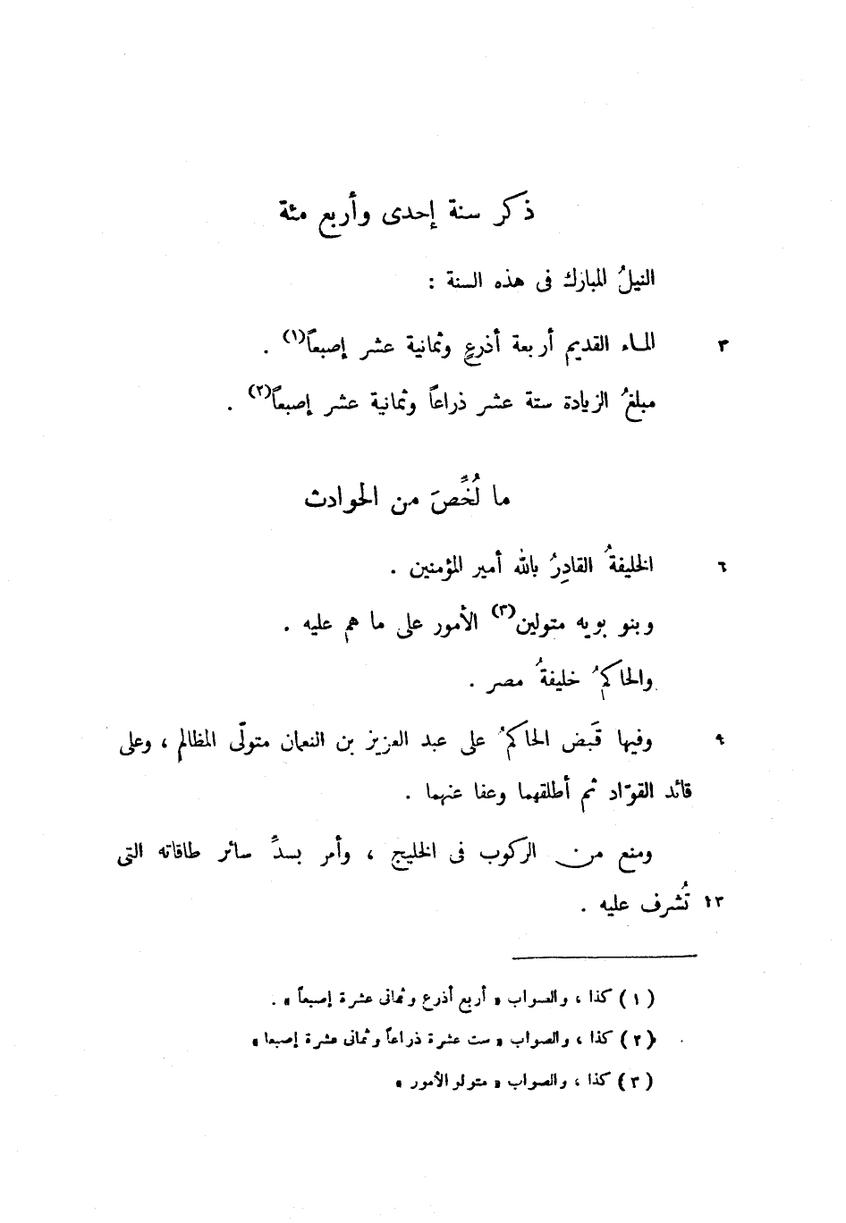 الماء القديم أربعة أذرع وثمانية عشر إصبعا.