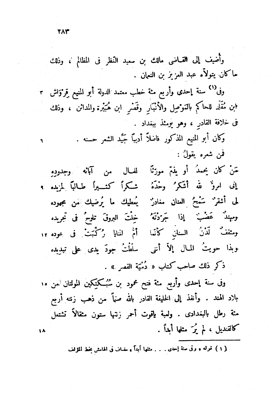وكان أبو المنيع المذكور فاضلا أديبا جيّد الشعر حسنه.