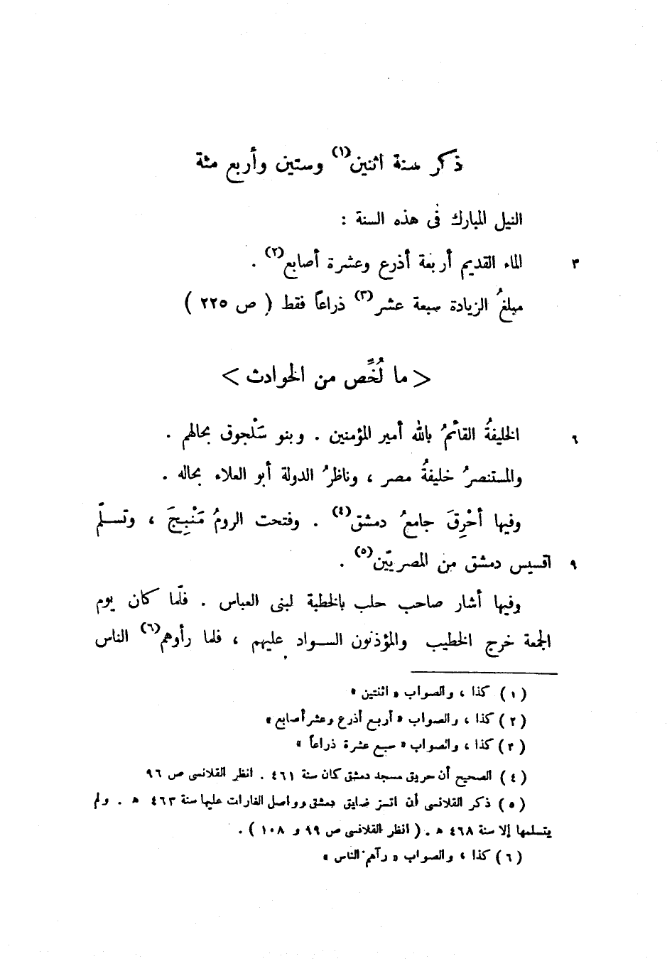 وفيها أحرق جامع دمشق. وفتحت الروم منبج، وتسلّم اقسيس دمشق من المصريّين.