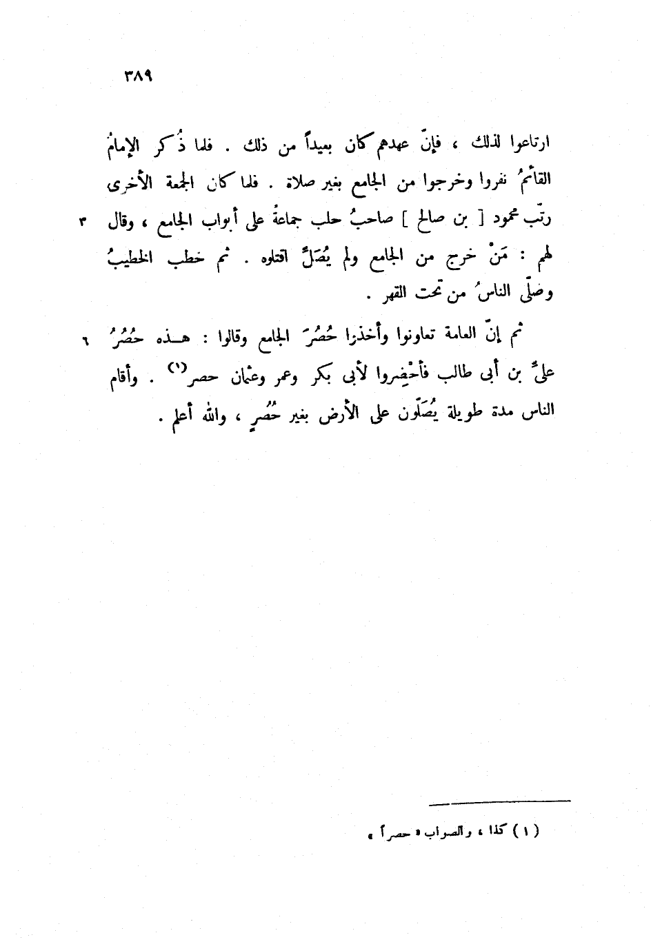 ثم إنّ العامة تعاونوا وأخذوا حصر الجامع وقالوا: هذه حصر علىّ بن أبى طالب فأحضروا لأبى بكر وعمر وعثمان حصر. وأقام الناس مدة طويلة يصلّون على الأرض بغير حصر، والله أعلم.