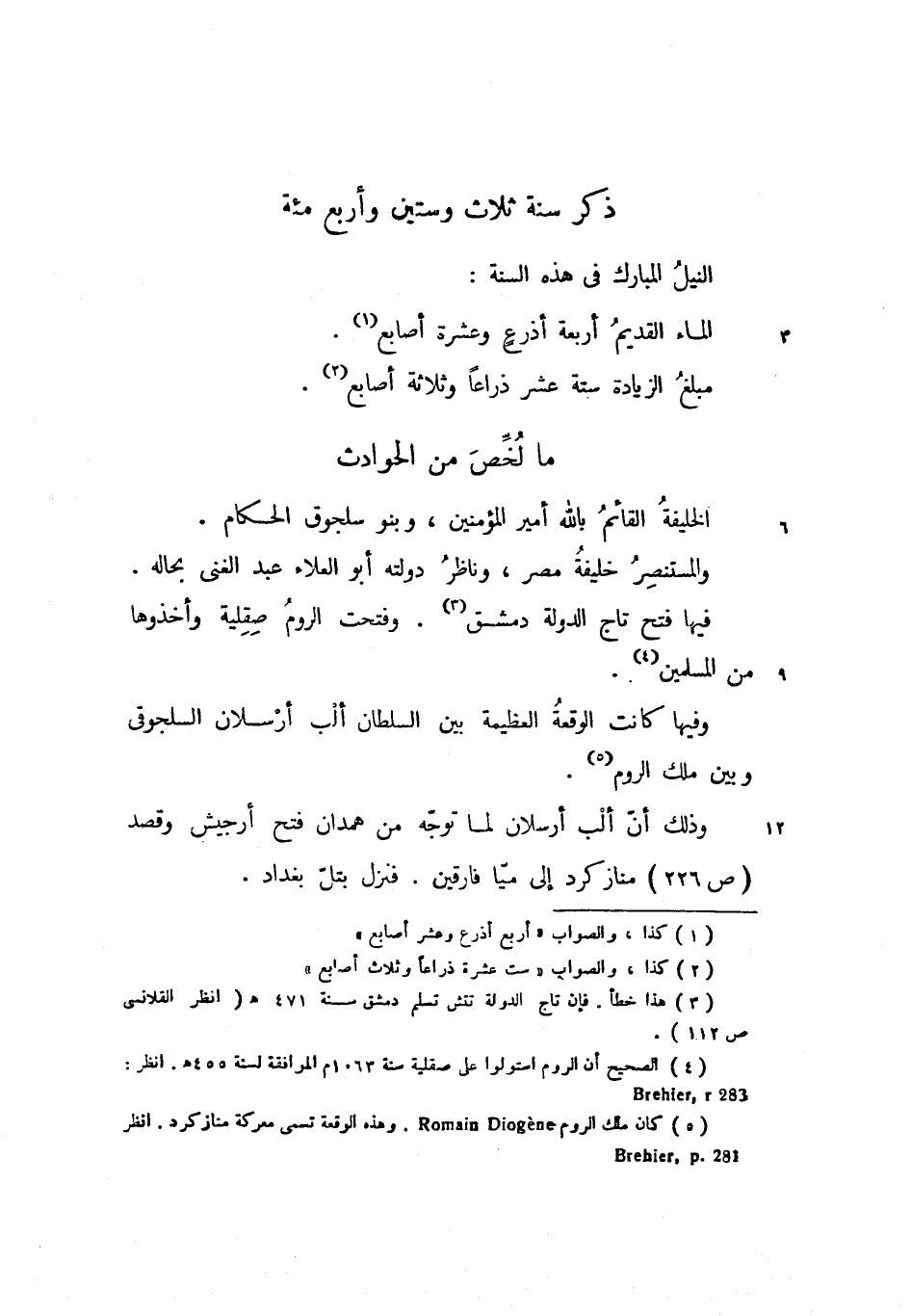 وفيها كانت الوقعة العظيمة بين السلطان ألب أرسلان السلجوقى وبين ملك الروم.