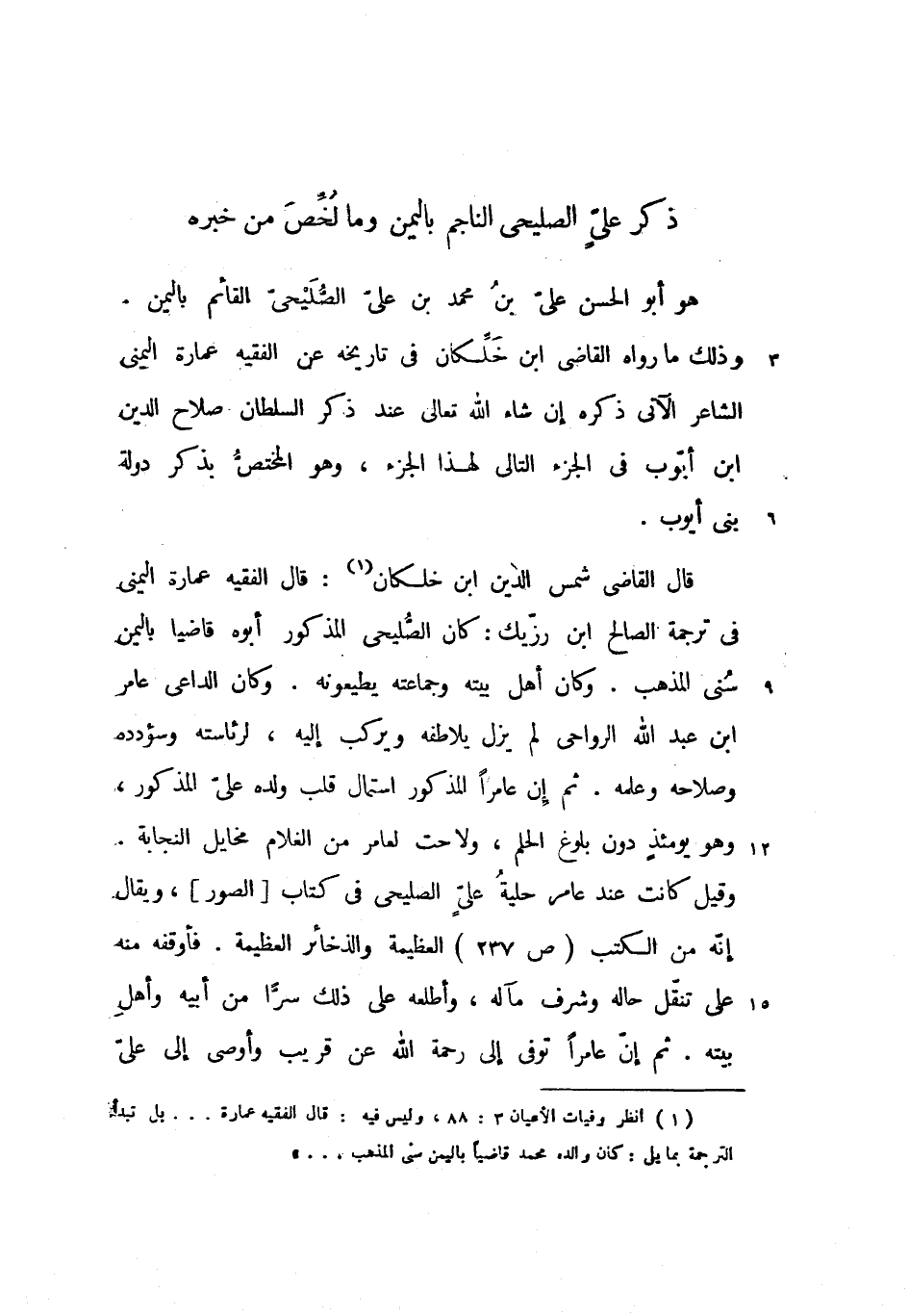 وذلك ما رواه القاضى ابن خلّكان فى تاريخه عن الفقيه عمارة اليمنى الشاعر الآتى ذكره إن شاء الله تعالى عند ذكر السلطان صلاح الدين ابن أيّوب فى الجزء التالى لهذا الجزء، وهو المختصّ بذكر دولة بنى أيوب.