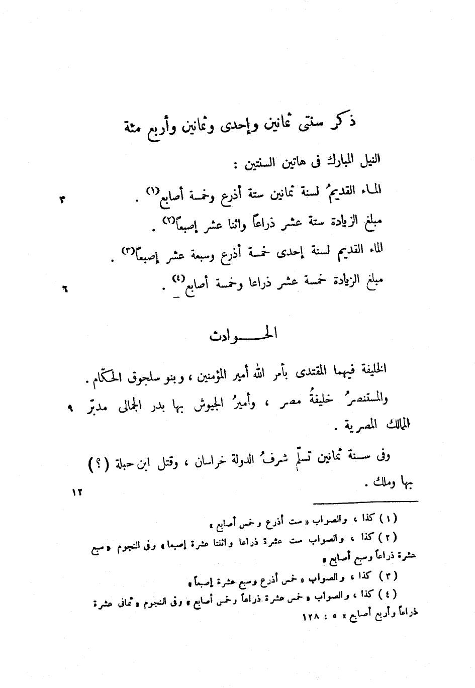 الماء القديم لسنة ثمانين ستة أذرع وخمسة أصابع.