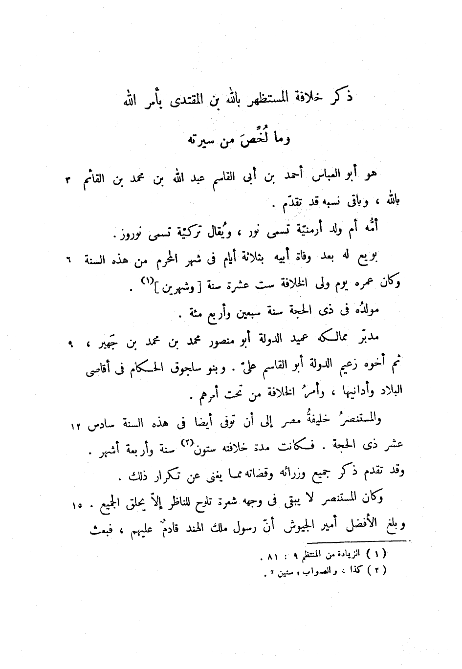 ذكر خلافة المستظهر بالله بن المقتدى بأمر الله