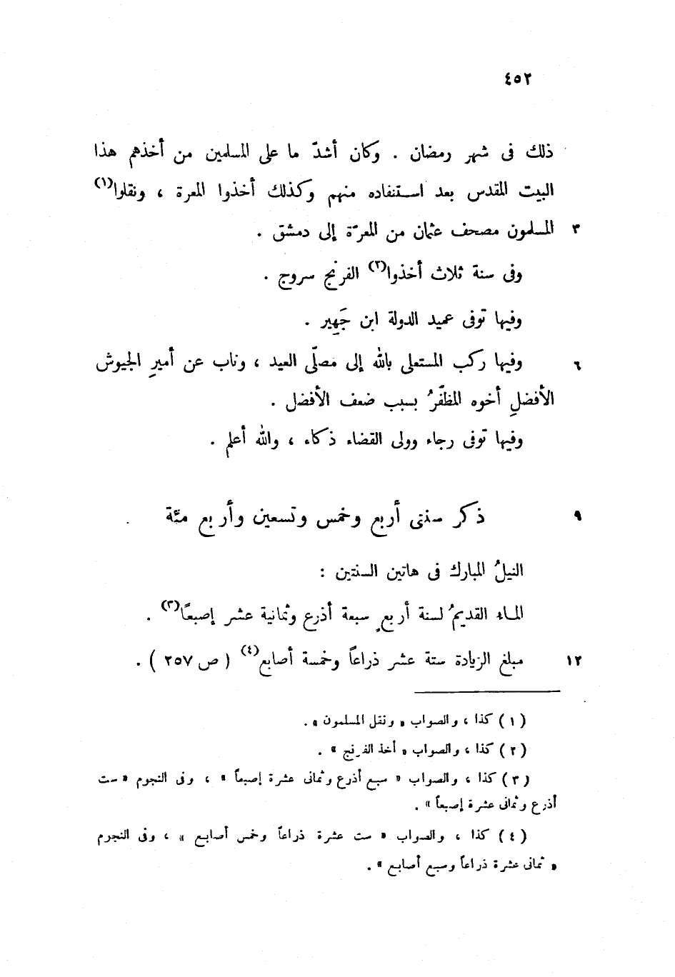 مبلغ الزيادة ستة عشر ذراعا وخمسة أصابع (ص 257).