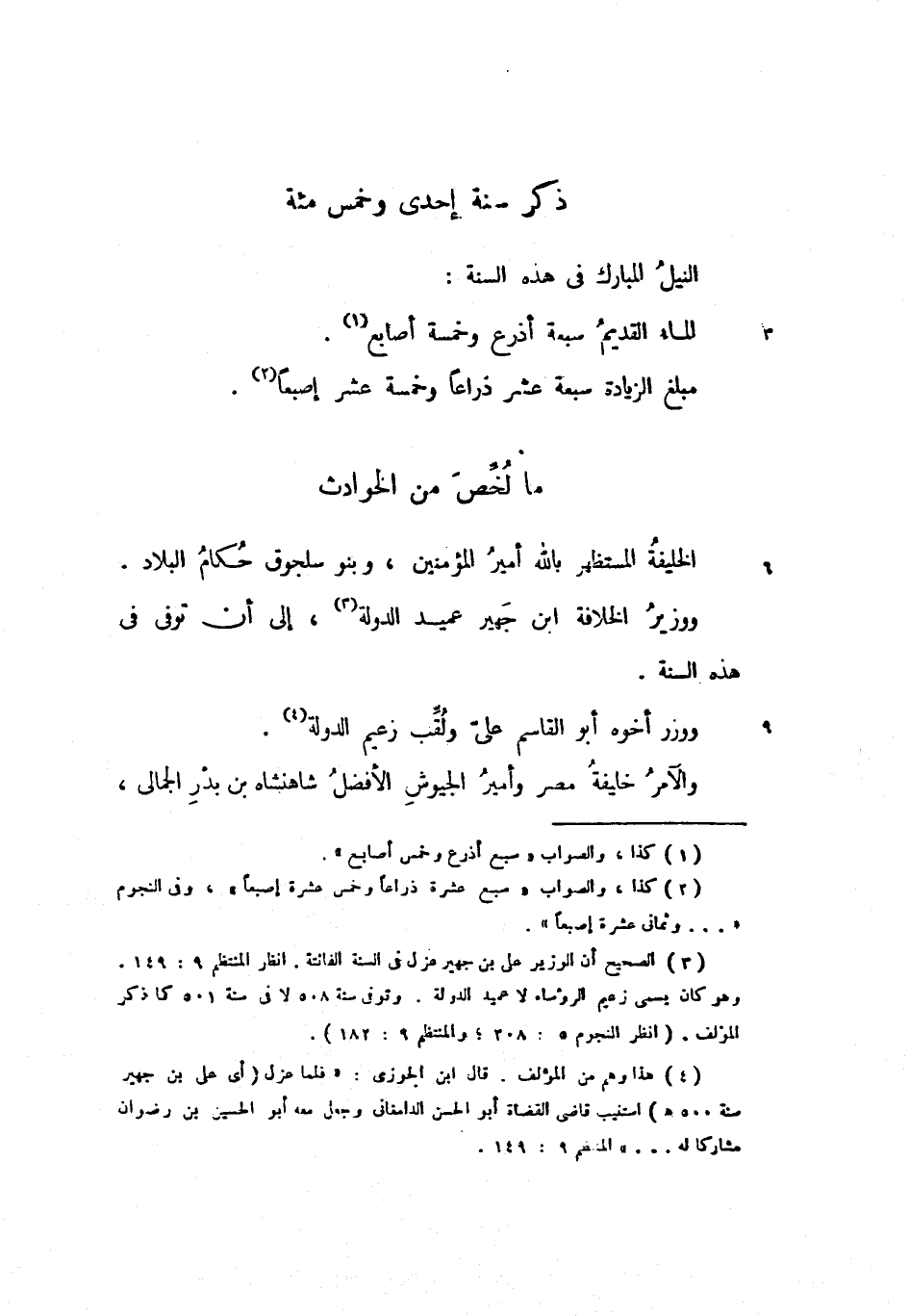 ووزير الخلافة ابن جهير عميد الدولة، إلى أن توفى فى هذه السنة.