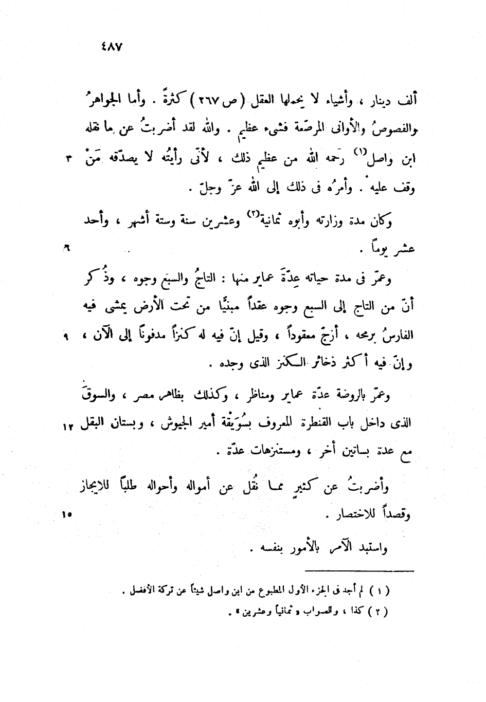 وأضربت عن كثير مما نقل عن أمواله وأحواله طلبا للايجاز وقصدا للاختصار.