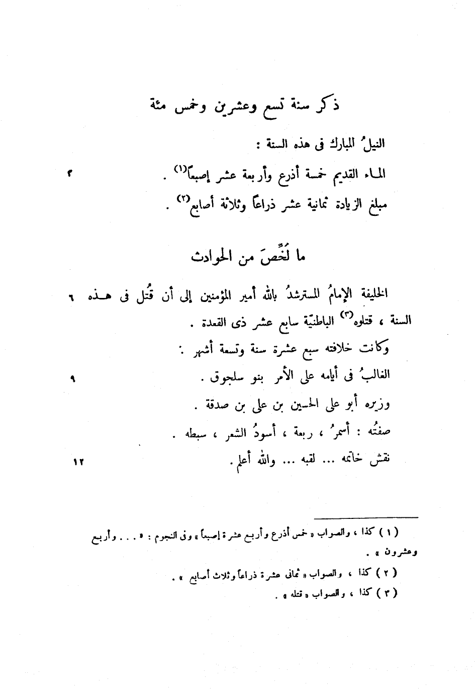 الخليفة الإمام المسترشد بالله أمير المؤمنين إلى أن قتل فى هذه السنة، قتلوه الباطنيّة سابع عشر ذى القعدة.