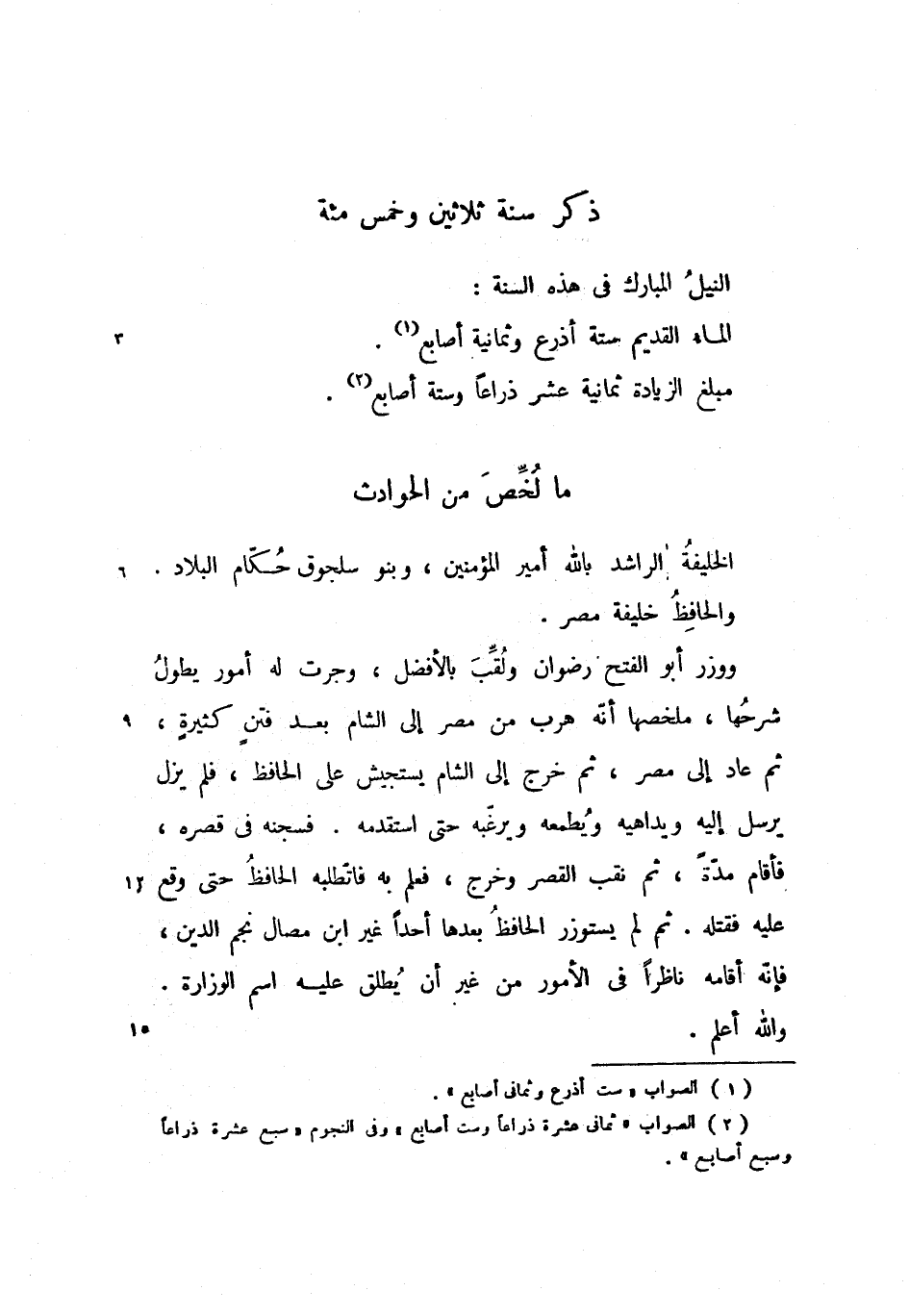 الماء القديم ستة أذرع وثمانية أصابع.