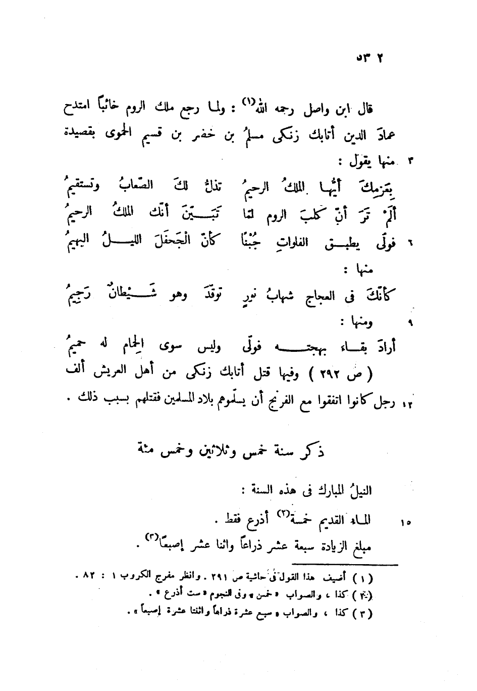 قال ابن واصل رحمه الله: ولما رجع ملك الروم خائبا امتدح عماد الدين أتابك زنكى مسلم بن خضر بن قسيم الحموى بقصيدة منها يقول: