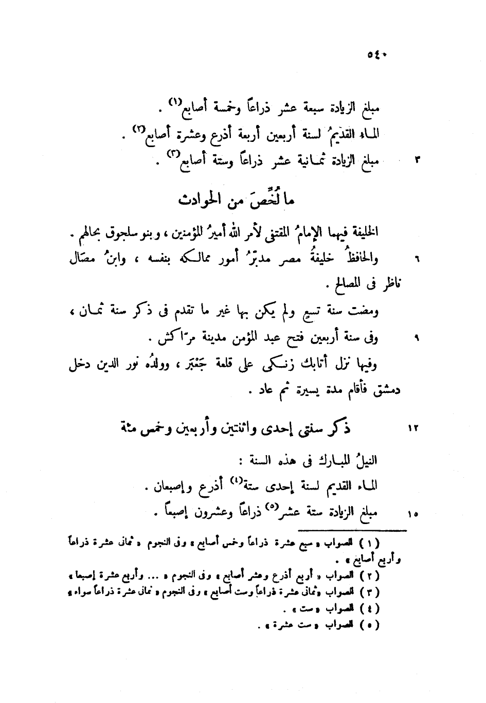 الماء القديم لسنة أربعين أربعة أذرع وعشرة أصابع.