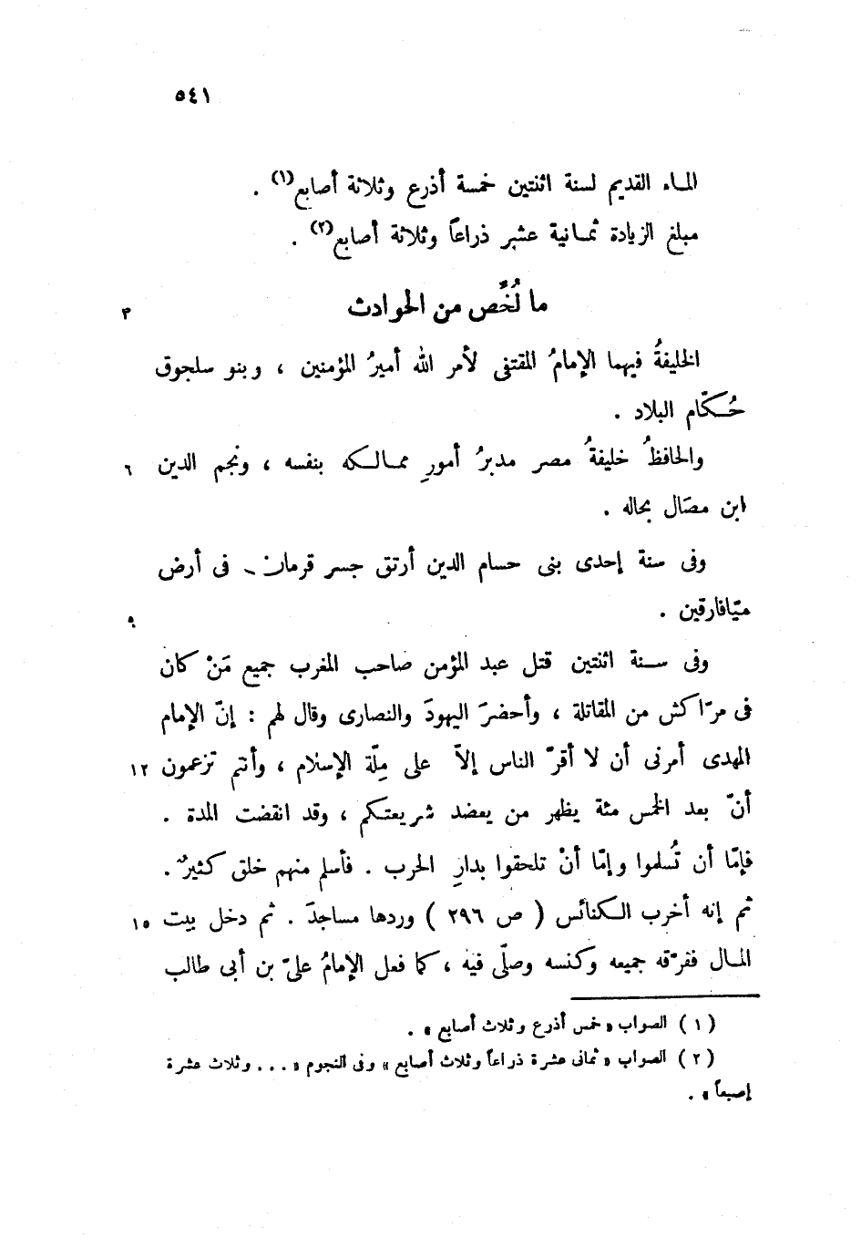 الماء القديم لسنة اثنتين خمسة أذرع وثلاثة أصابع.
