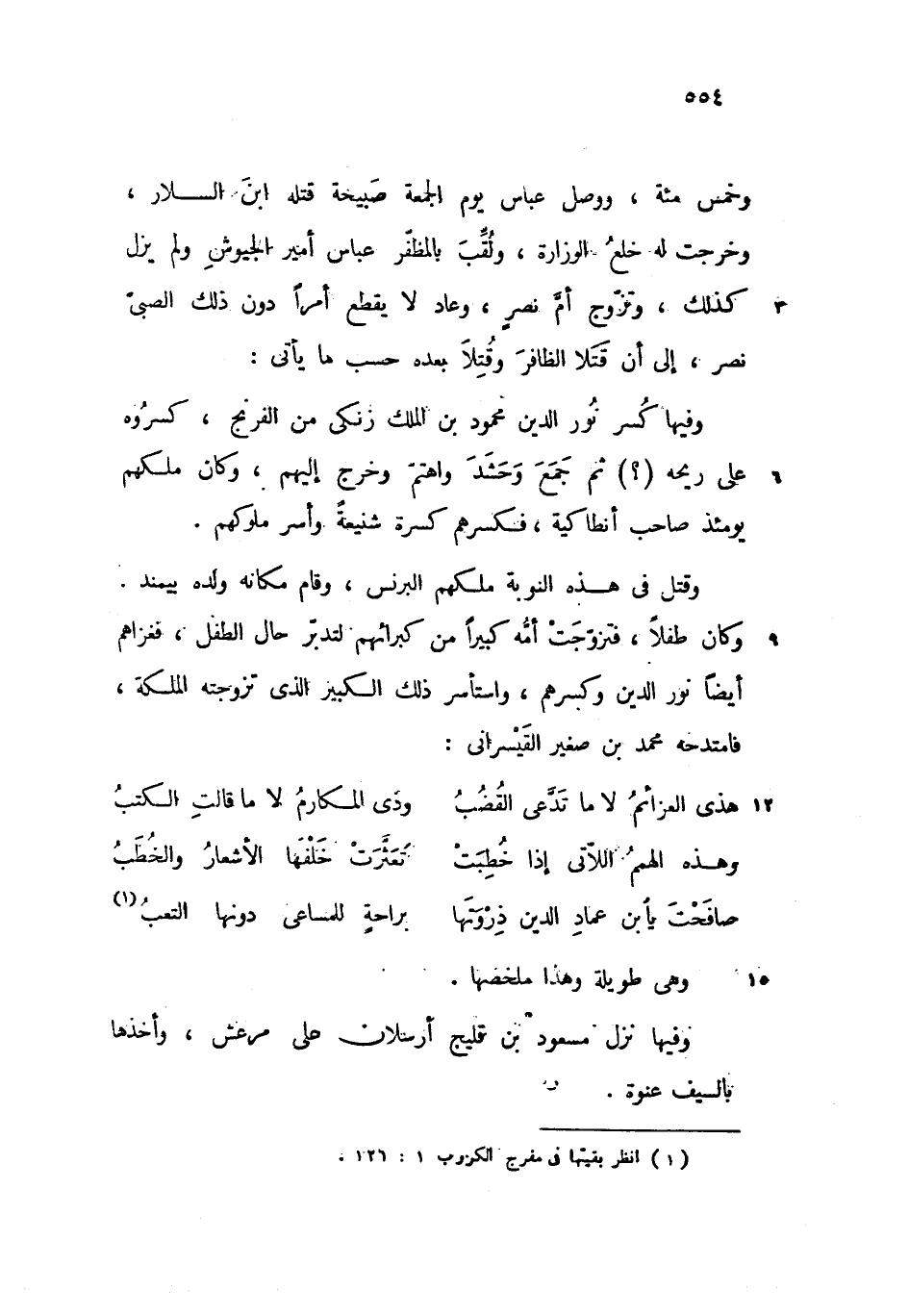وكان طفلا، فتزوّجت أمّه كبيرا من كبرائهم لتدبّر حال الطفل، فغزاهم أيضا نور الدين وكسرهم، واستأسر ذلك الكبير الذى تزوجته الملكة، فامتدحه محمد بن صغير القيسرانى: