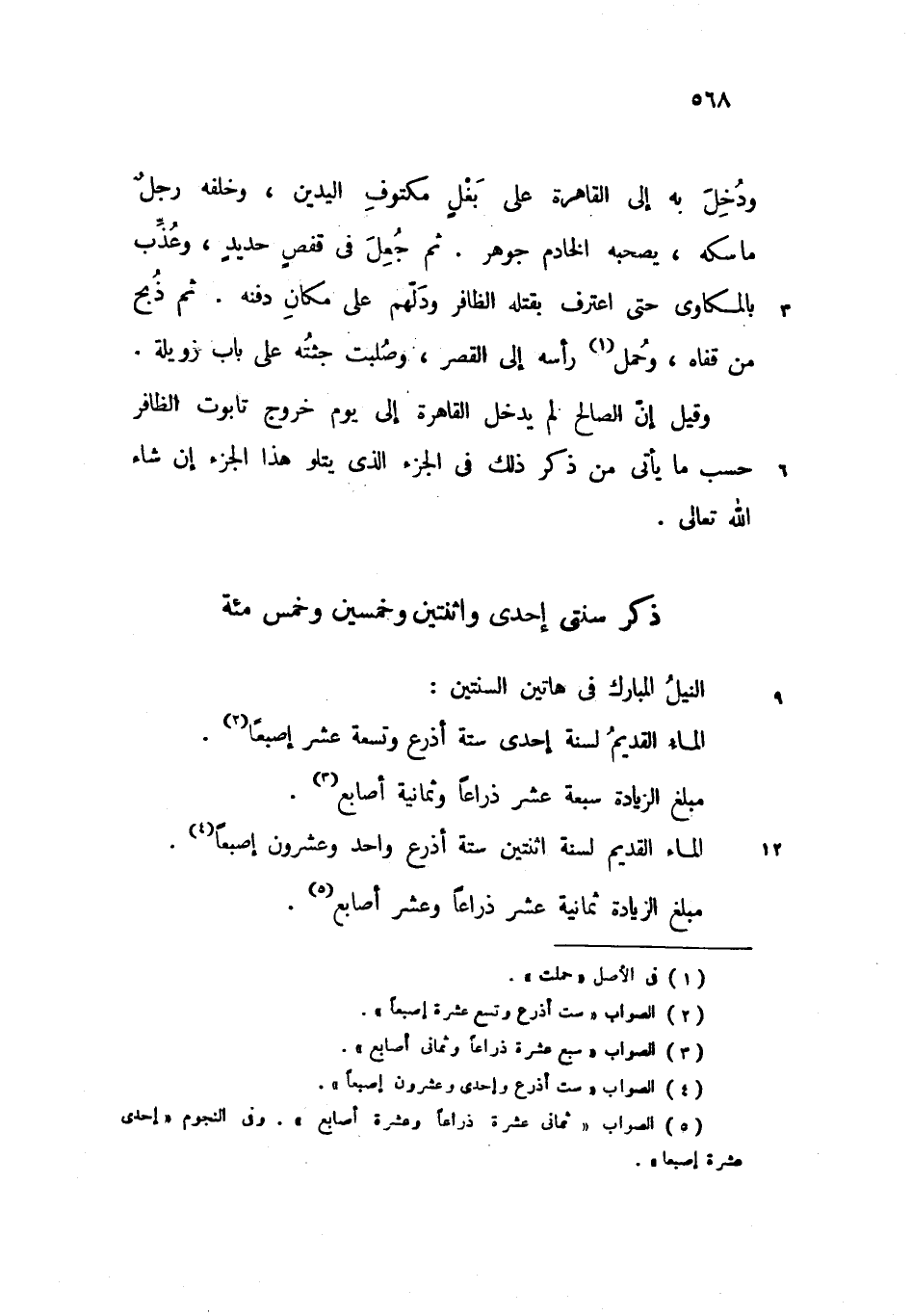 الماء القديم لسنة إحدى ستة أذرع وتسعة عشر إصبعا.
