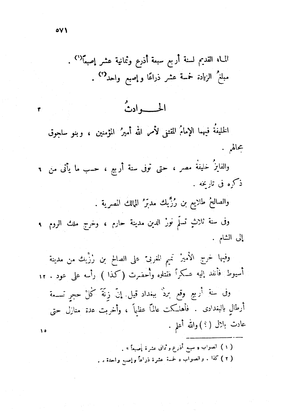 مبلغ الزيادة خمسة عشر ذراعا وإصبع واحد.
