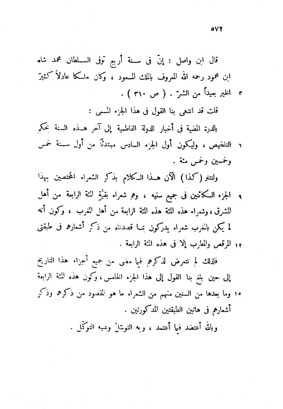 فلذلك لم نتعرض لذكرهم فيما مضى من جميع أجزاء هذا التاريخ إلى حين بلغ بنا القول إلى هذا الجزء الخامس، وكون هذه المئة الرابعة وما بعدها من السنين منهم من الشعراء ما هو المقصود من ذكرهم وذكر أشعارهم فى هاتين الطبقتين المدكورتين.
