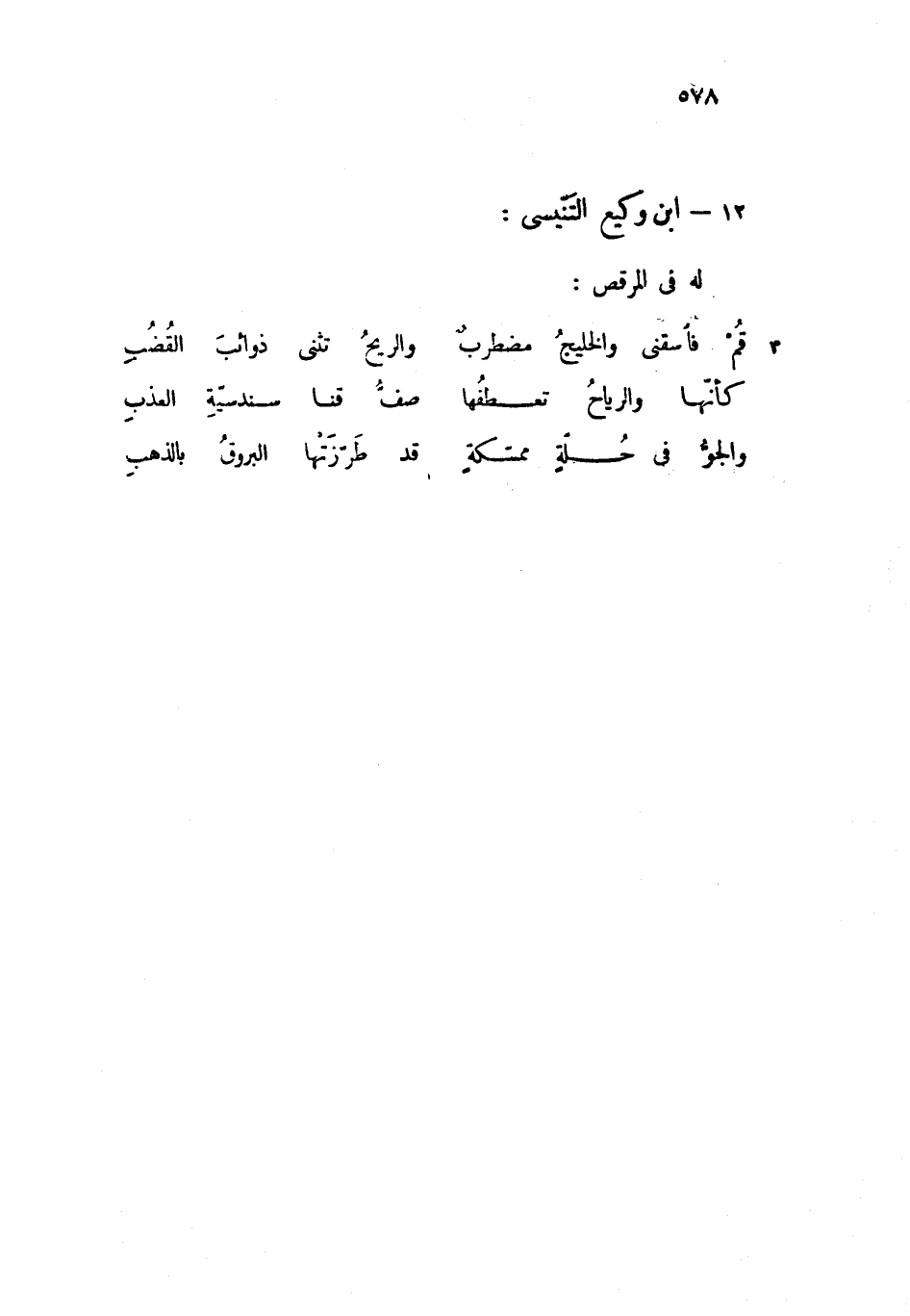 قم فاسقنى والخليج مضطرب … والريح تثنى ذوائب القضب