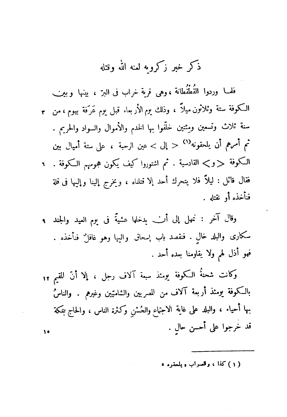ثم أمرهم أن يلحقونه <إلى> عين الرحبة، على ستة أميال بين الكوفة <و> القادسية. ثم اشتوروا كيف يكون هجومهم الكوفة.