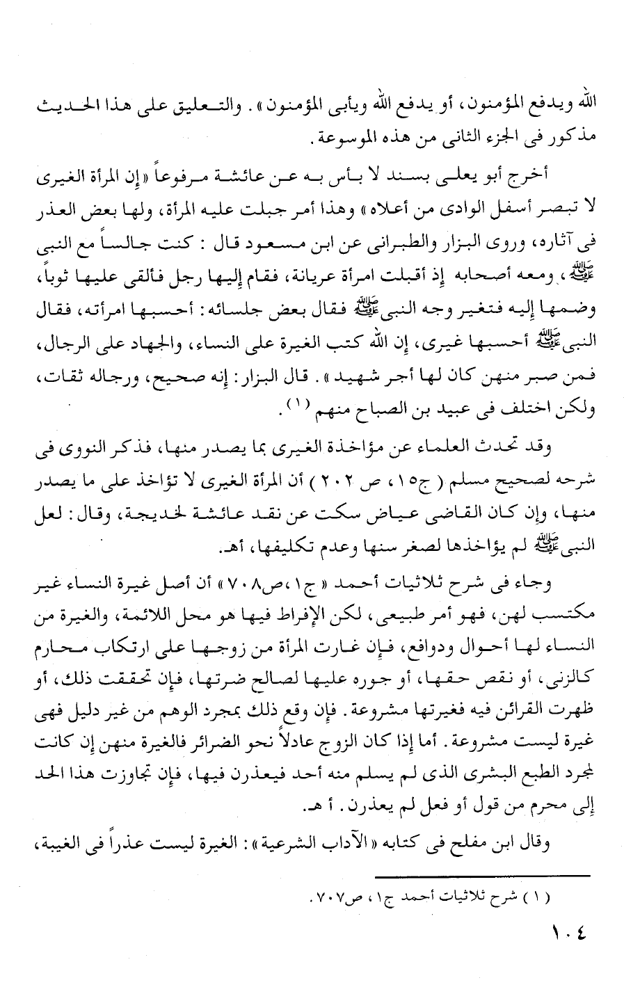 وجاء فى شرح ثلاثيات أحمد " جا، ص 8 0 7 " أن أصل غيرة النساء غير