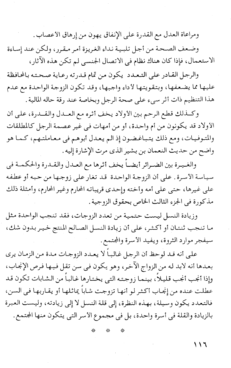 فالتعدد يكون وسيلة، بهذه النظرة، إلى قلة النسل لا إلى زيادته، وليست العبرة