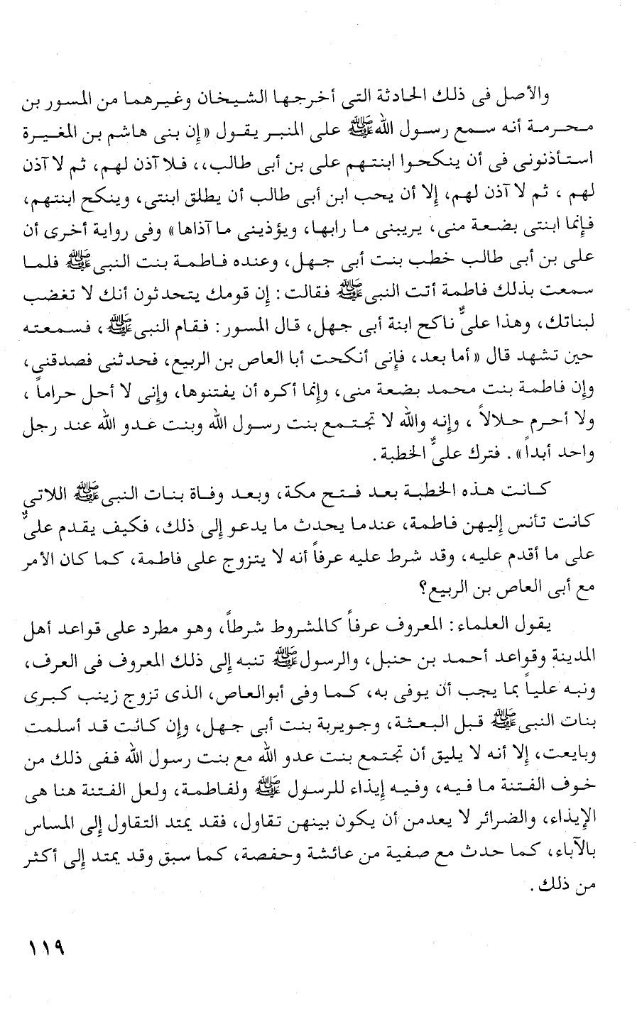 لبناتك " وهذا على ناكح ابنة أبى جهل " قال المسور: فقام افي ط!! " فسمعته