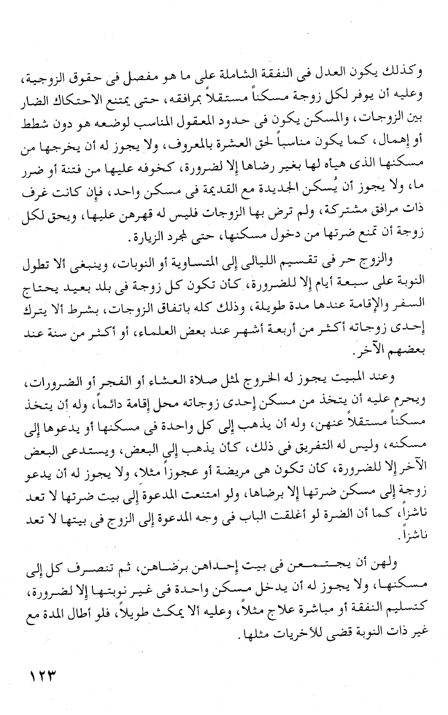 وعليه أن يوفر لكل زوجة مصكنا مستقلا بمرافقه، حتى يمتنع الاحتكاك الضار