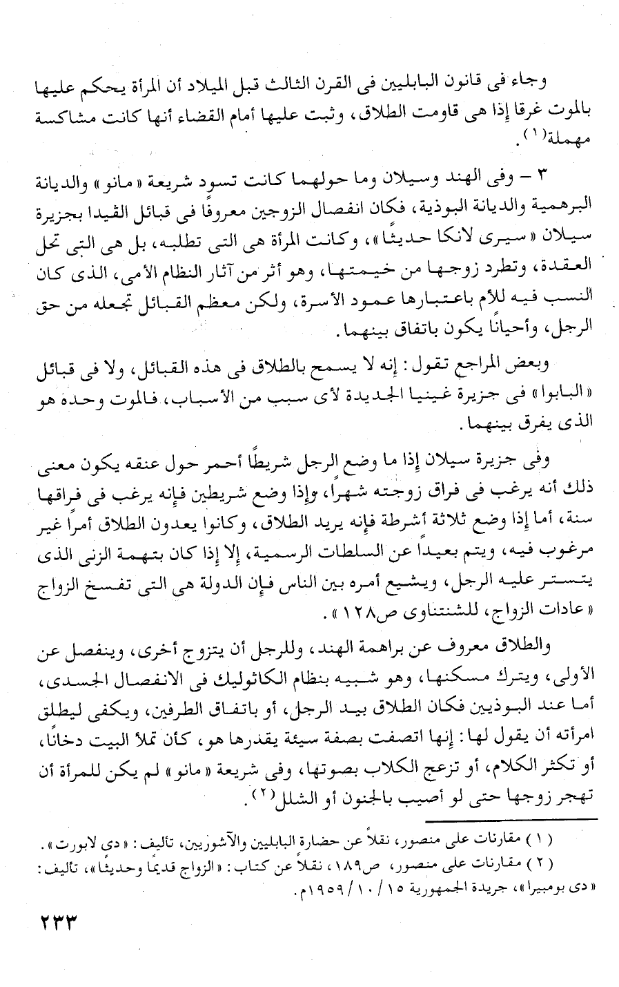 (2) مقارنات على منعحور، ح! 189، ناقلا عن! صتاب: " الزواج قديما وحدلثا "، تأليف: