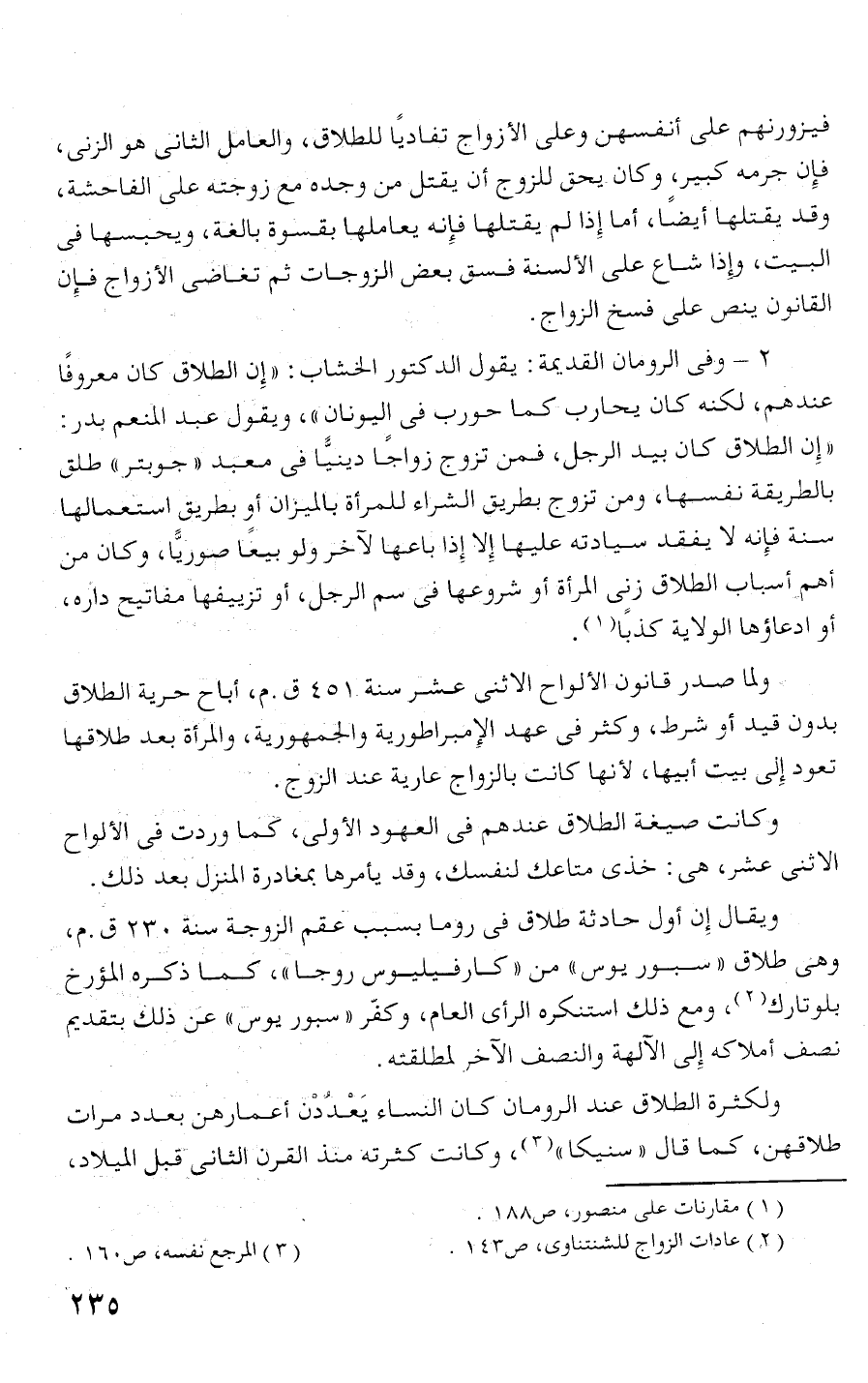 2 - و فى الرومان القد يمة: يقول الدكتور الخشاب: " إن الطلاق كان معروفا