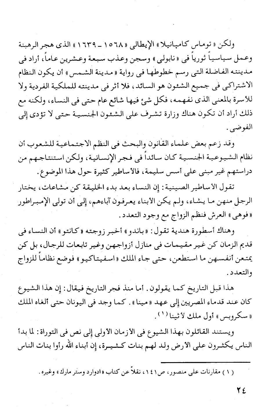 (1) مقارنات على منصور، ص ا 4 1، نقلا عن كتاب " ادوارد وستر مارك " وغيره.