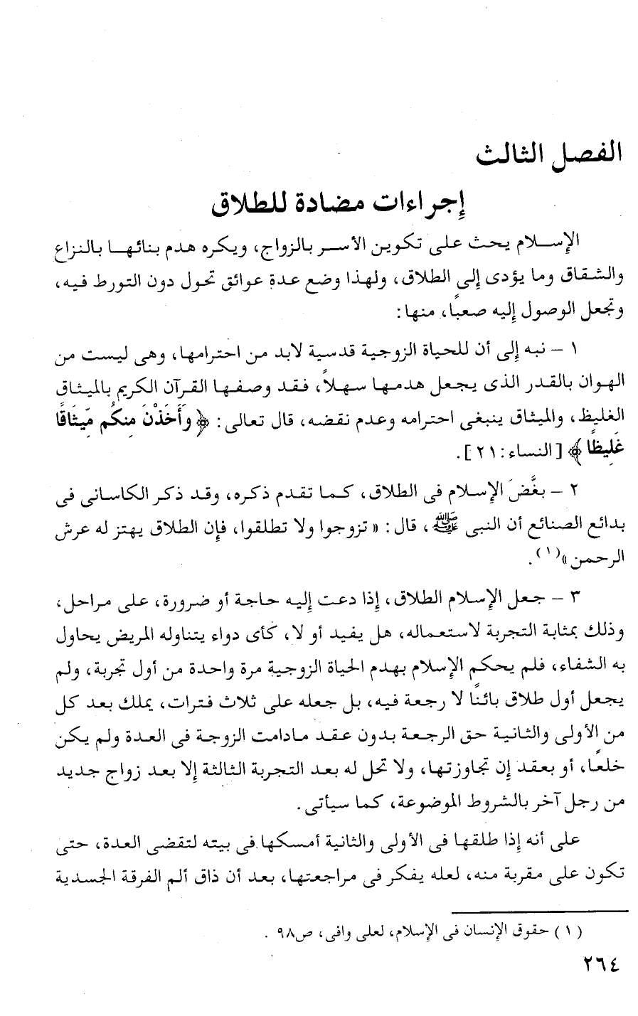 (1) حقوث الإنسان فى الا شلام، لعلى وافى، حس 98.
