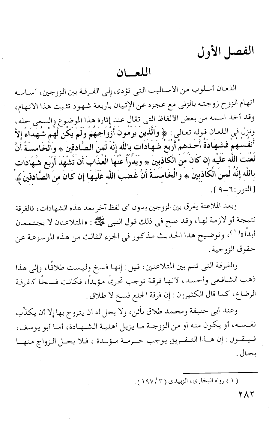 اللعان أسلوب من الا ساليب التى تؤدى إلى الفرقة بين الزوجين، أساسه