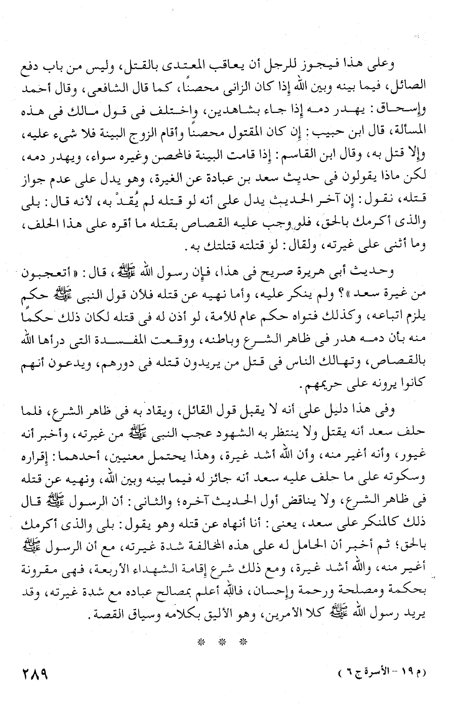 المسألة، قال ابن حبيب: إدن كالن المقتول محصنا وأقام الزوج البينة فلا شىء عليه،