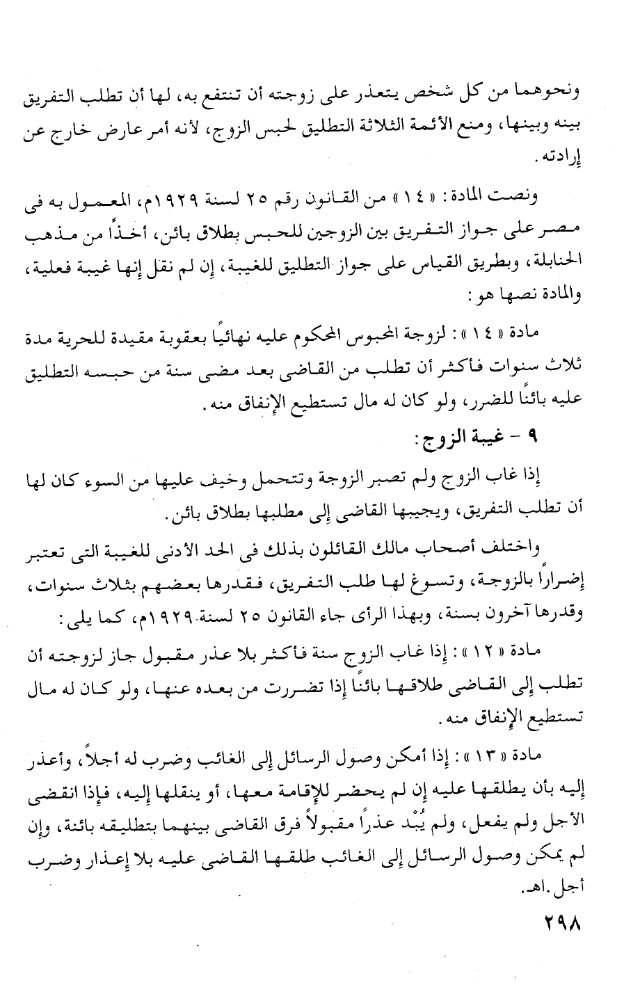 مادة " 12 ": إذا غاب الزوج سنة فأكثر بلا عذر مقبول جاز لزوجته أ ن