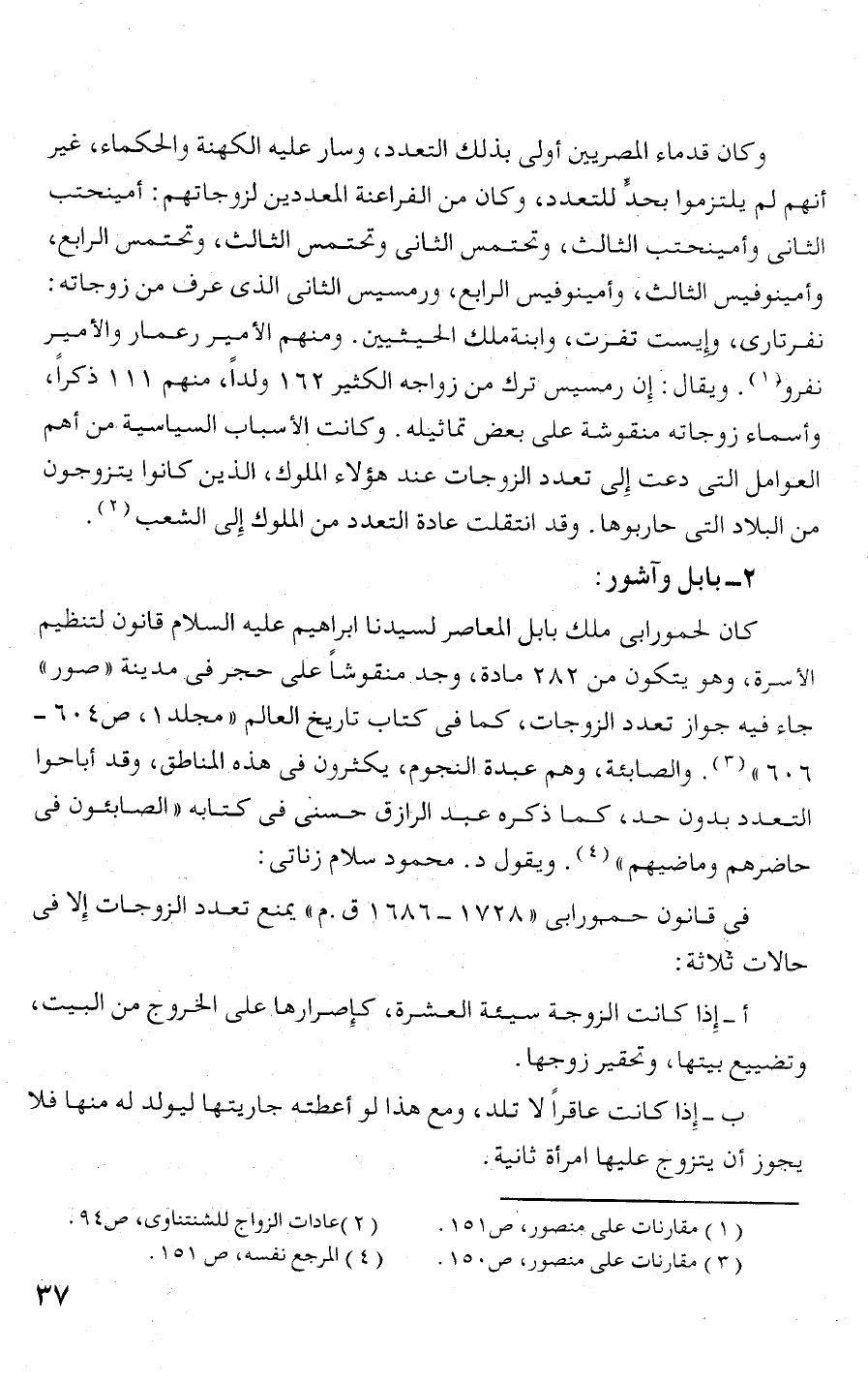 فى قانون حمهورابى " 728 1 - 686 1 دتى. م)) يمنع تعدد الزوجات إلا فى