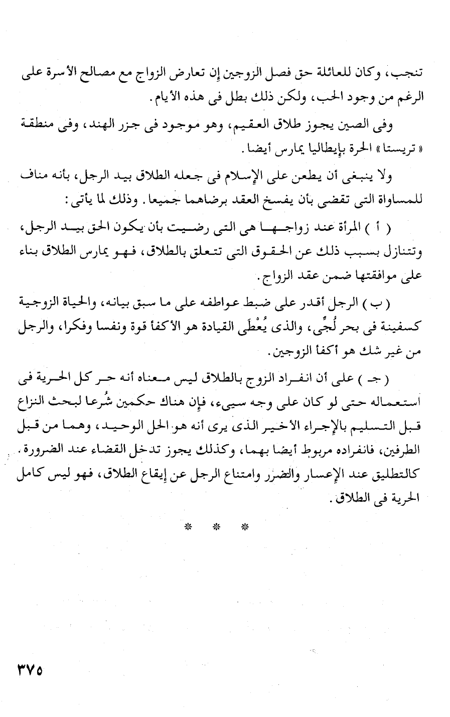 ولا ينبغى أن يطعن على الإسلام فى جعله الطلاق بيد الرجل، بأف مناف