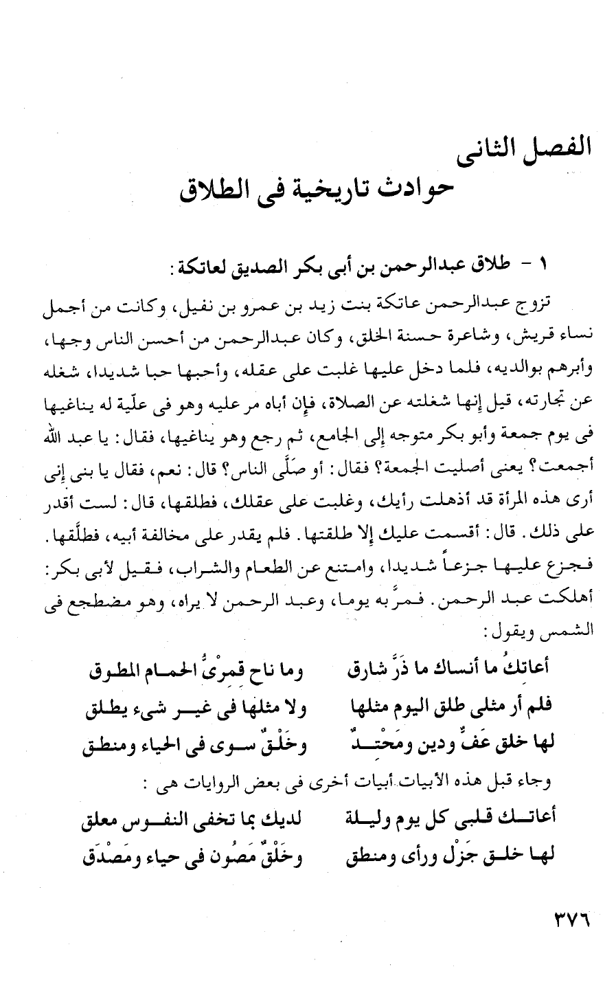 1 - طلاق عبدالرحمن بن أبى بكر الصديق لعاتكة: