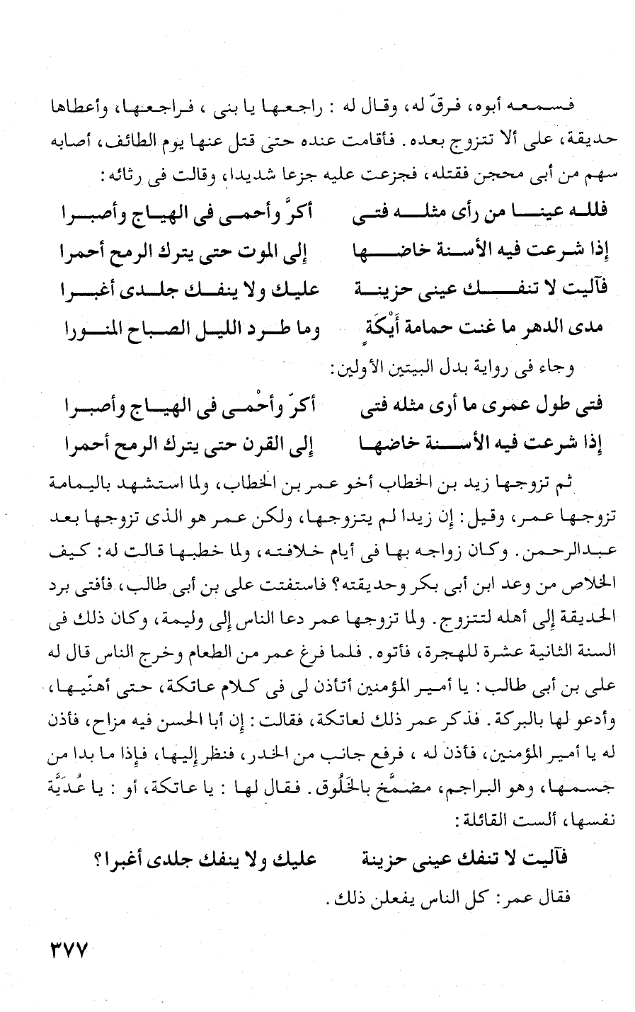 على بن أبى طالب: يا أمير المؤمنين أتأذن لى فى كلام عاتكة، حتى أهنيها، ا