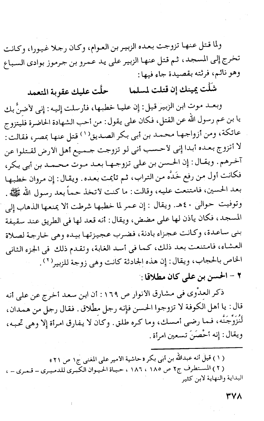 الخاص بالحجاب، ويقال: إن هذه الجادثة كانت وهى زوجة للزبير (2).