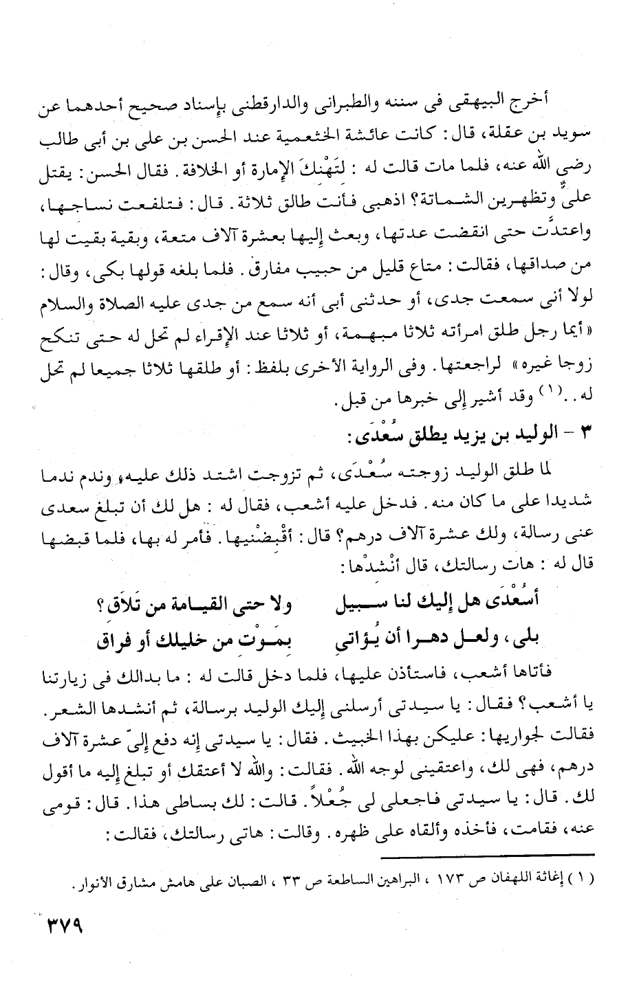 سويد بن عقلة، قال: كانت عائشة الخثعمية عند الحسن بن على بن أبى طالب