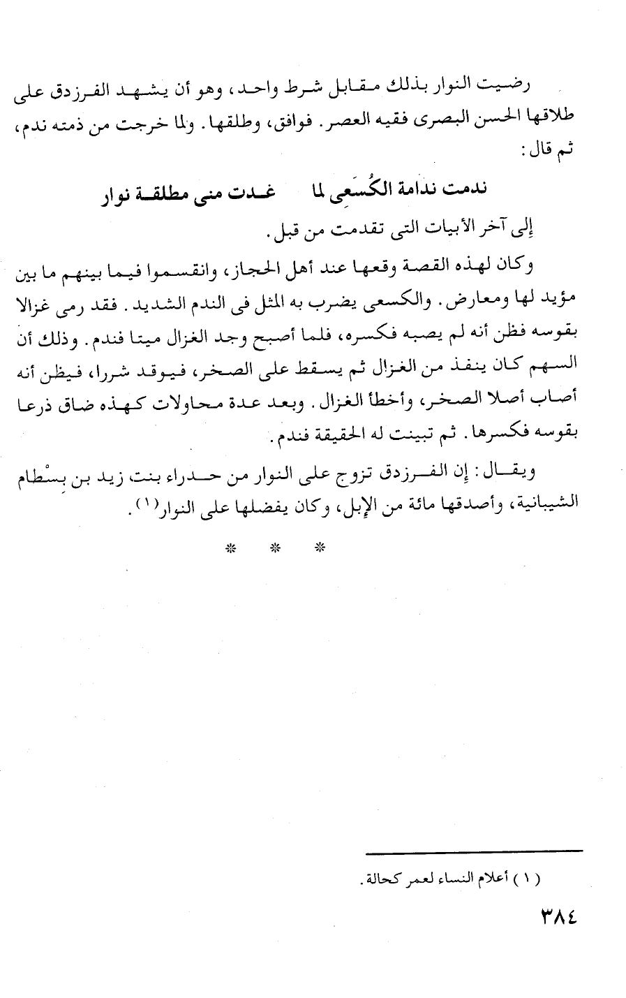 رضيت النوار بذلك مقابل شرط واحد، وهو أن يشهد الفرزدف على